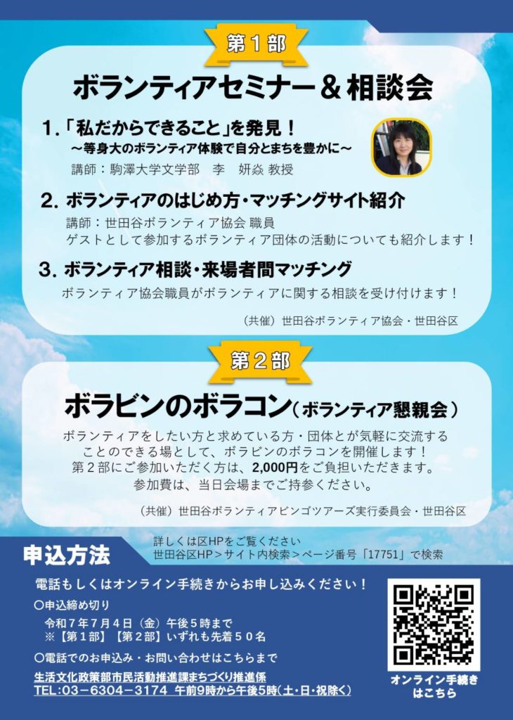 また、第2部としてボランティアに興味のある方同士が気軽に交流することのできる「ボラビンのボラコン」(ボランティア懇親会)も開催します!
